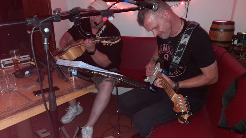 Erst vor wenigen Wochen hatte sich das Gitarrenduo „Wicked Game“ mit Jörg Müller und Frank Heidemann gegründet und gleich um eine Teilnahme an der Lokalrunde beworben. Die Zusage vom Zoco Bella am Markt, das erstmals dabei war und seine Wiedereröffnung feierte, kam nur vier Tage vor dem Auftrittstermin…