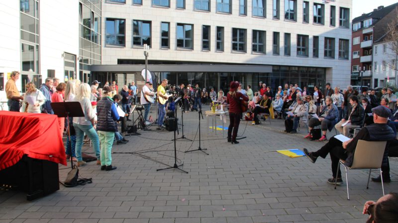 Am Samstag, den 26. Februar 2022, zwei Tage nach Kriegsbeginn in der Ukraine, fand auf dem Neusser Marktplatz ein spontanes Friedenskonzert statt. Initiiert hatten dieses die drei Neusser Musiker Frank Heidemann, Mike Stattler und Martin Dittert.
